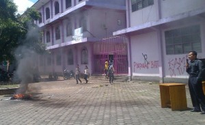Selain itu Mansyur juga menegaskan bahwa aksi yang berlangsung, merupakan aksi lanjutan dari aksi yang dilakukan hari Senin yang lalu, yang dilakukan dengan memboikot kampus dan masih akan melanjutkan aksi yang sama sampai tuntutan mahasiswa dipenuhi. “Aksi kedua ini kami lakukan dengan memboikot kampus , dan ini akan berlanjut hingga tuntutan kami dipenuhi,” tegas Mansyur. (AAD)