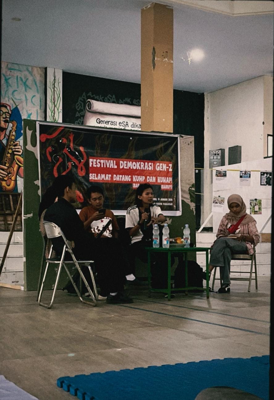 Festival ini menghadirkan pemateri yakni Ian dari Lembaga Bantuan Hukum (LBH) Makassar, dan Imam dari SMI UINAM. Pandangan dari sisi hukum dipertegas oleh Ian yang mengungkapkan bahwa meskipun reformasi hukum diperlukan, naskah KUHP dan KUHAP yang baru justru akan memberikan kewenangan besar kepada aparat penegak hukum yang berpotensi menyalahgunakan kekuasaan.