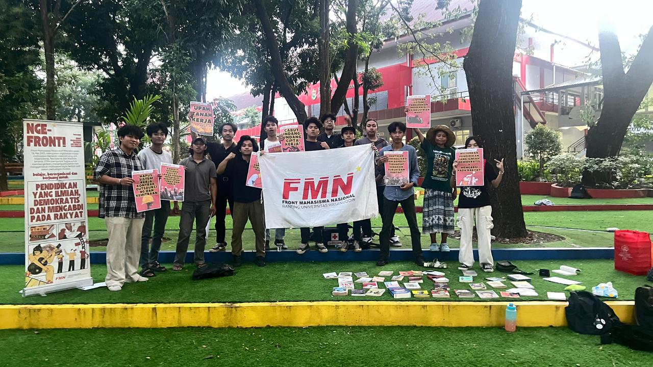 Sementara itu, perwakilan FMN lainnya, Iren, menyoroti kondisi buruh dan petani yang dinilai semakin terdesak serta potensi eksploitasi terhadap mahasiswa.